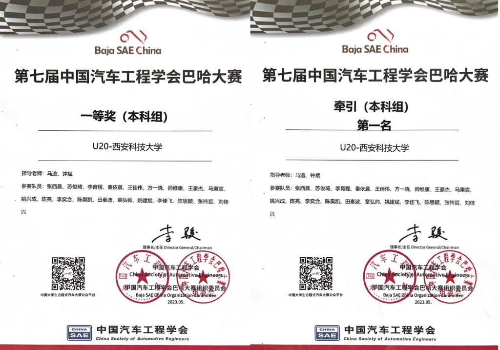 近日,全国第七届中国汽车工程学会巴哈大赛(Baja SAE China,简称BSC)落下帷幕。西安科技大学机械工程学院教师马逾、钟斌指导的秦风车队在比赛中取得历史突破,荣获全国一等奖(本科组)和牵引(本科组)全国第一名的优异成绩。