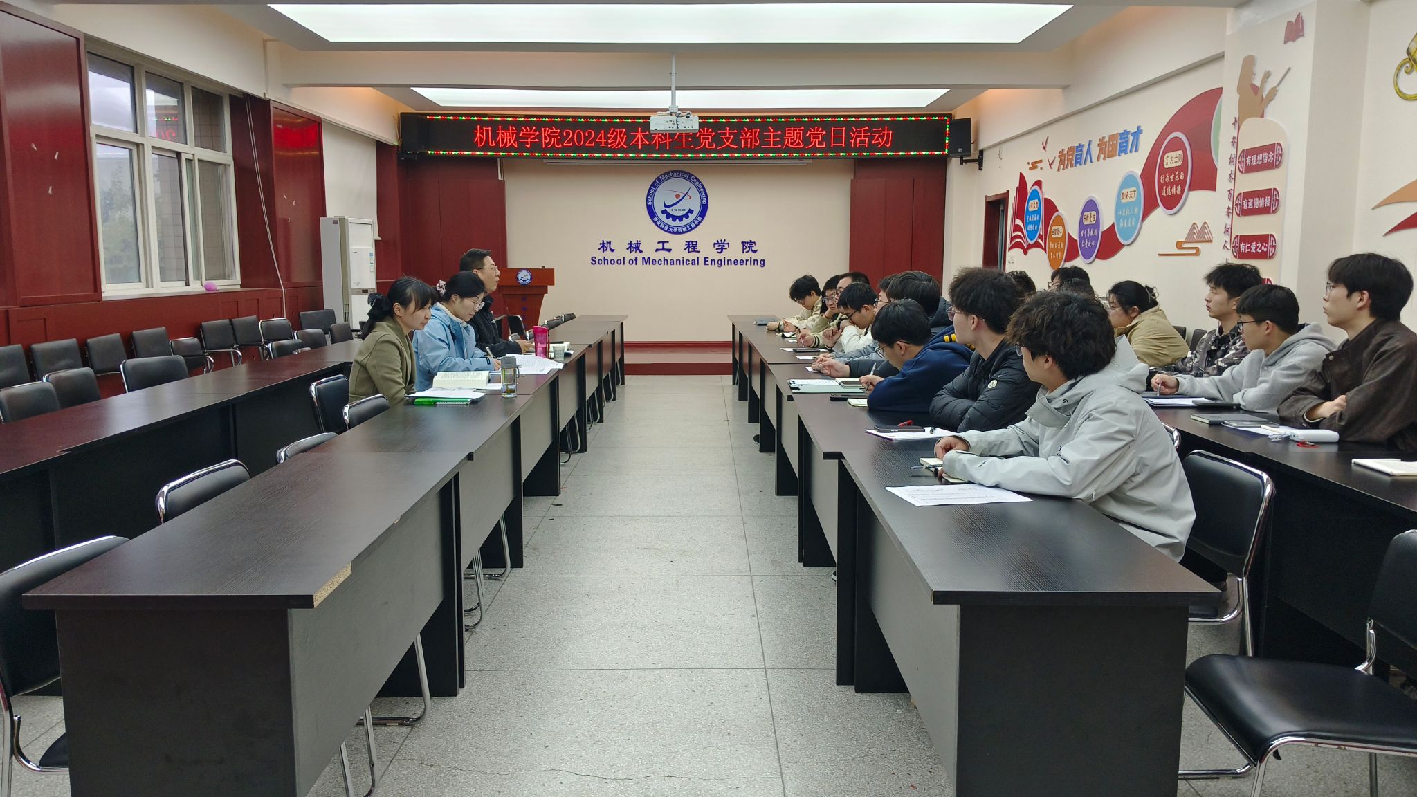 10月20日下午,机械工程学院2024级本科生党支部在临潼校区骊山校园开展“深入学习《习近平谈治国理政》(第五卷)、筑牢机械学子信仰之基”主题党日活动。活动由党支部书记杨芝主持,党支部全体成员及2024级学生入党积极分子参加。