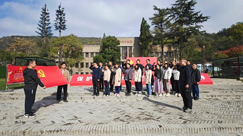 宝鸡长乐塬抗战工业遗址是国内现存最完整的抗战工业遗址,不仅是宝鸡近代轻工业、机械制造业、电力工业的起源地,更是中国抗战精神和民族工业精神的重要承载地。通过参观,大家深刻感悟“天下兴亡匹夫有责、百折不挠、坚韧不拔”的抗战精神。全体党员面向党旗,高举右拳,怀着敬仰之情,重温了入党誓词,铮铮誓言,铿锵有力,既是对入党初心的回顾和洗礼,也是对使命担当的承诺和信心。