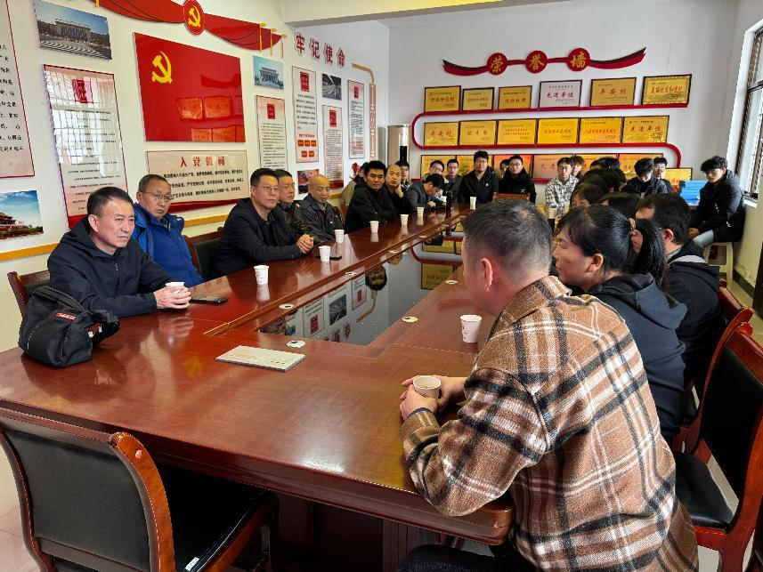 下午,师生代表来到相公镇芋元村村委会,党支部书记鱼小妮向大家介绍了芋元村的发展历程及村集体产业发展等基本情况。驻村第一书记尚云鹏简要介绍了自2012年西安科技大学帮扶芋元村以来,学校从智力帮扶、教育帮扶、科技帮扶、人才帮扶、信息帮扶、文化帮扶、民生帮扶、志愿帮扶及消费帮扶举措开展情况和取得的实效。芋元村已经建成采摘园、苹果园、农机设备库等特色产业,以党建引领促进高效率、高质量发展。郭小平勉励大家,要深入学习贯彻党的二十届三中全会精神和全国教育大会精神,深学细悟入脑入心,结合实际做实做细,深刻领悟“两个确立”的决定性意义,增强“四个意识”,坚定“四个自信”,做到“两个维护”。要坚持立德树人根本任务,坚持五育并举,守正创新,进一步深化教育教学改革,加强课程思政建设,不断提升教风、学风和工作作风,努力培养德智体美劳全面发展的社会主义建设者和接班人。要有坚定的理想信念,做到心中有信念、眼里有人民、身上有本领,与时代同进步、共发展,坚定不移听党话、跟党走,怀抱梦想又脚踏实地,敢想敢为又善作善成,争做有理想、敢担当、能吃苦、肯奋斗的新时代好青年。