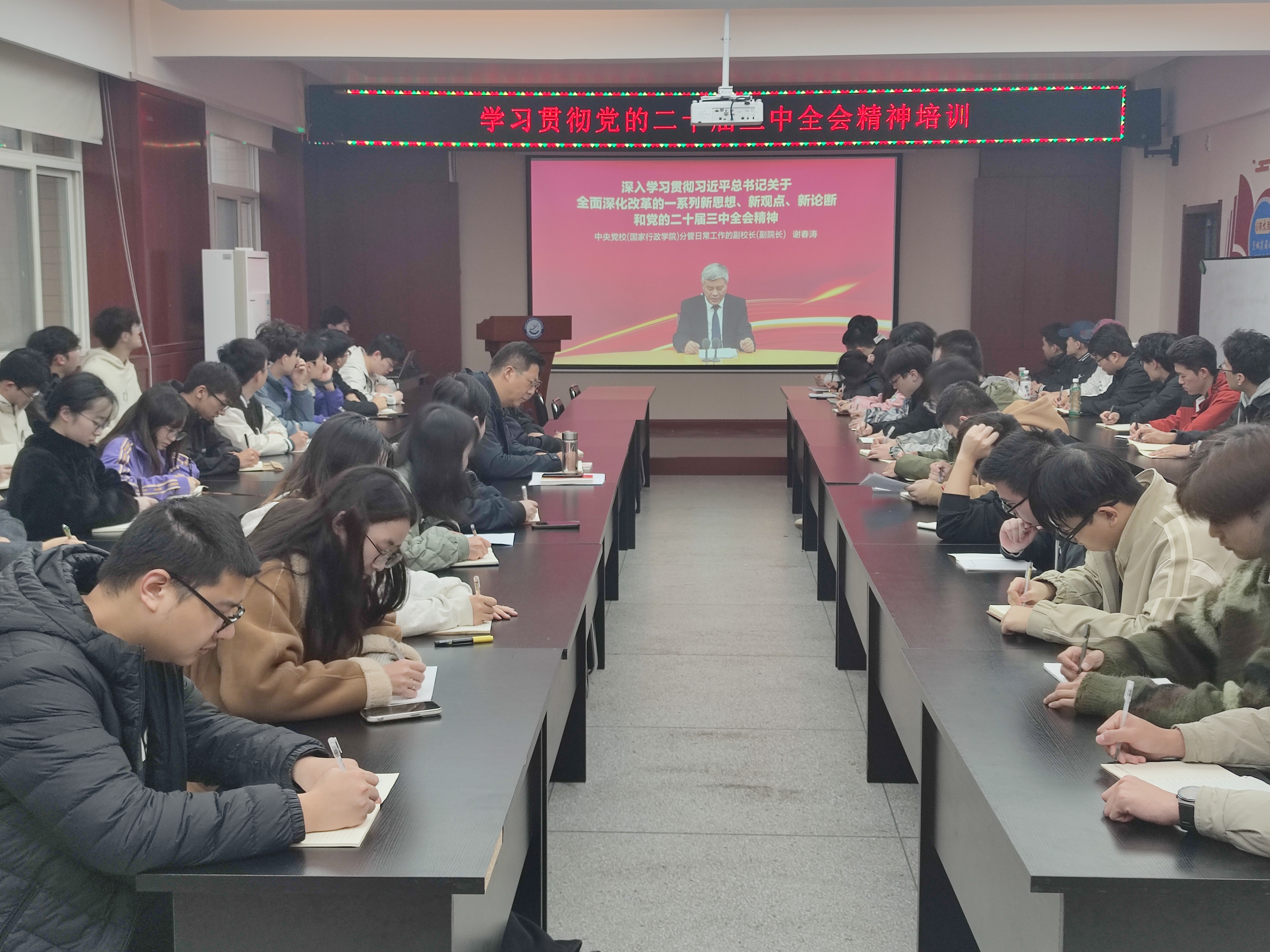 会上,郭小平传达了学校党委关于学习贯彻党的二十届三中全会精神培训工作要求。全体党员集中观看了中央党校(国家行政学院)分管日常工作的副校长(副院长)谢春涛主讲的“深入学习贯彻习近平总书记关于全面深化改革的一系列新思想、新观点、新论断和党的二十届三中全会精神”培训课程。课程指出,党的十八届三中全会以来,习近平总书记亲自领导、亲自部署、亲自推动全面深化改革工作,科学总结历史经验,深刻把握改革规律,运用马克思主义的立场观点方法,创造性提出一系列新思想、新观点、新论断,明确回答了新时代为什么要全面深化改革、怎样推进全面深化改革等重大问题,构成习近平新时代中国特色社会主义思想最为丰富、最为生动、最富创意的组成部分。深入学习贯彻好这些新思想、新观点、新论断,对于统一全党全国各族人民思想和行动,以更加奋发有为的精神状态推进进一步全面深化改革,具有重大现实意义和深远历史意义。