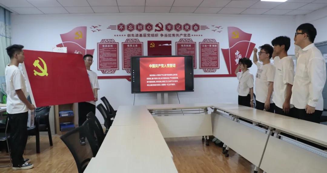 全体新发展党员庄严肃立,举起右拳,面对党旗,庄严宣誓。宣誓完毕后,机卓2201班班长刘子瑜作为新发展党员发言。他表示,要坚定听党话、跟党走的政治信念,勇担科技强国建设的时代使命,在强国建设、民族复兴的历史潮流中勇立潮头,争做时代弄潮儿。