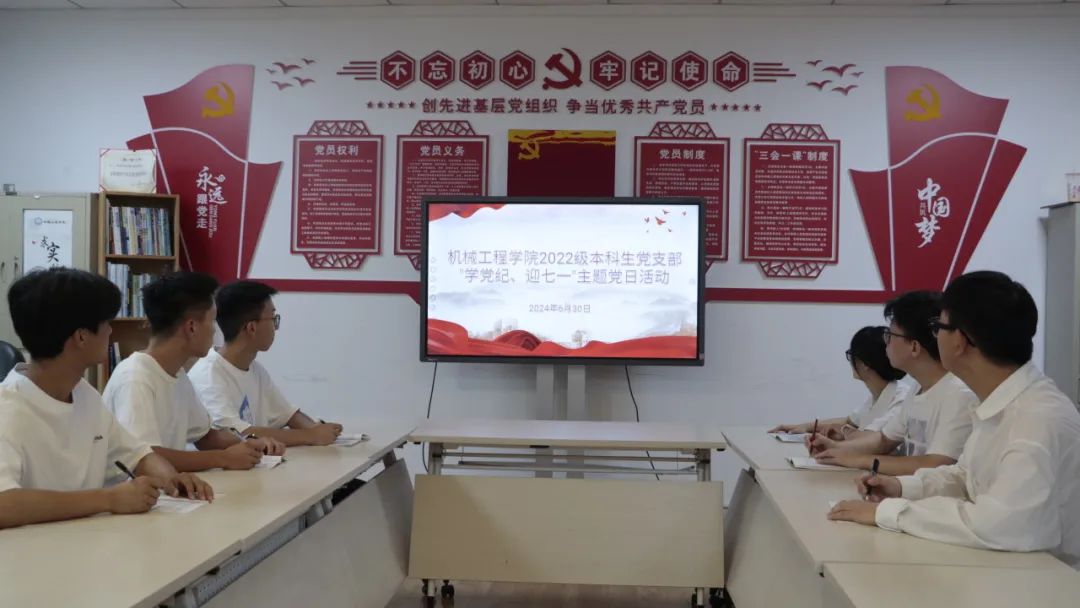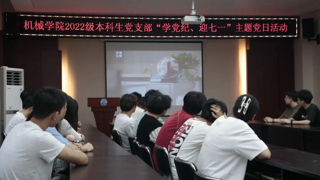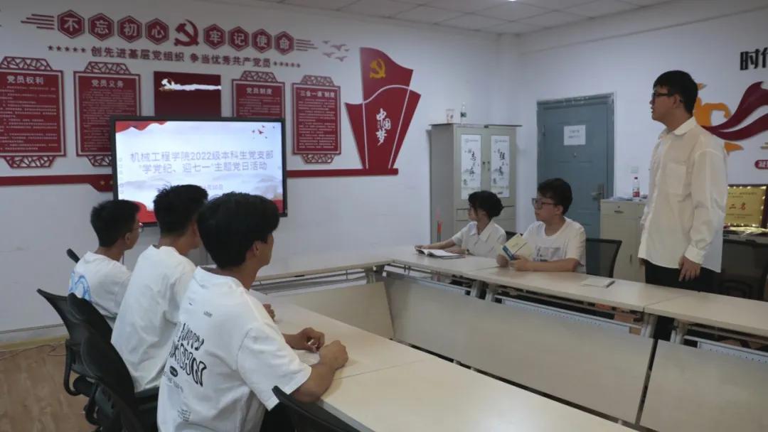 为庆祝建党103周年,积极发挥学生党员和入党积极分子的使命感和责任感,持续推动党纪学习教育走深走实。近日,机械工程学院2022级本科生党支部开展“学党纪、迎七一”系列主题党日活动。