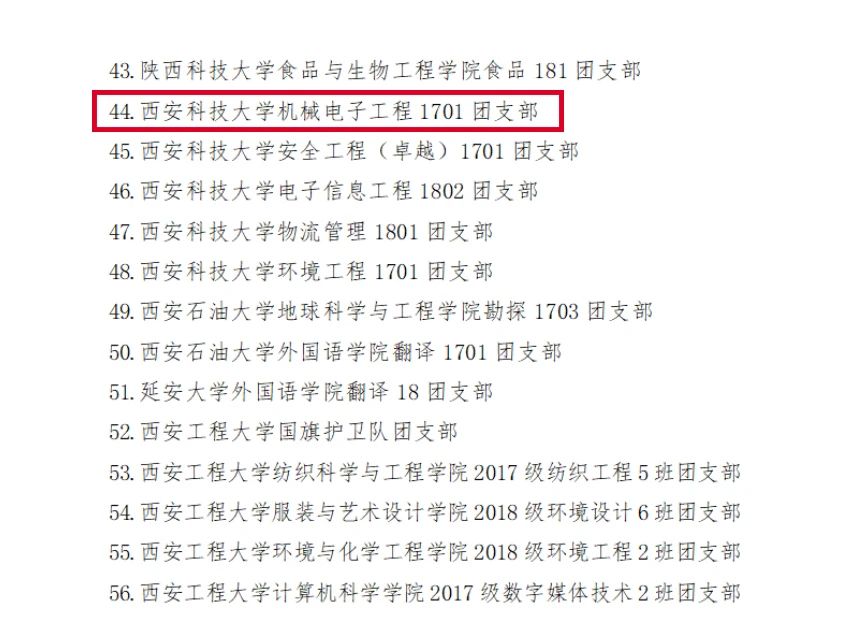 西安科技大学机械电子工程1701团支部被评为“全省高校团建样板支部”。