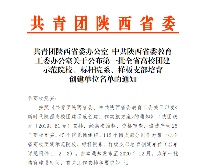 第一批全省高校团建示范院校,标杆院系,样板支部培育创建名单