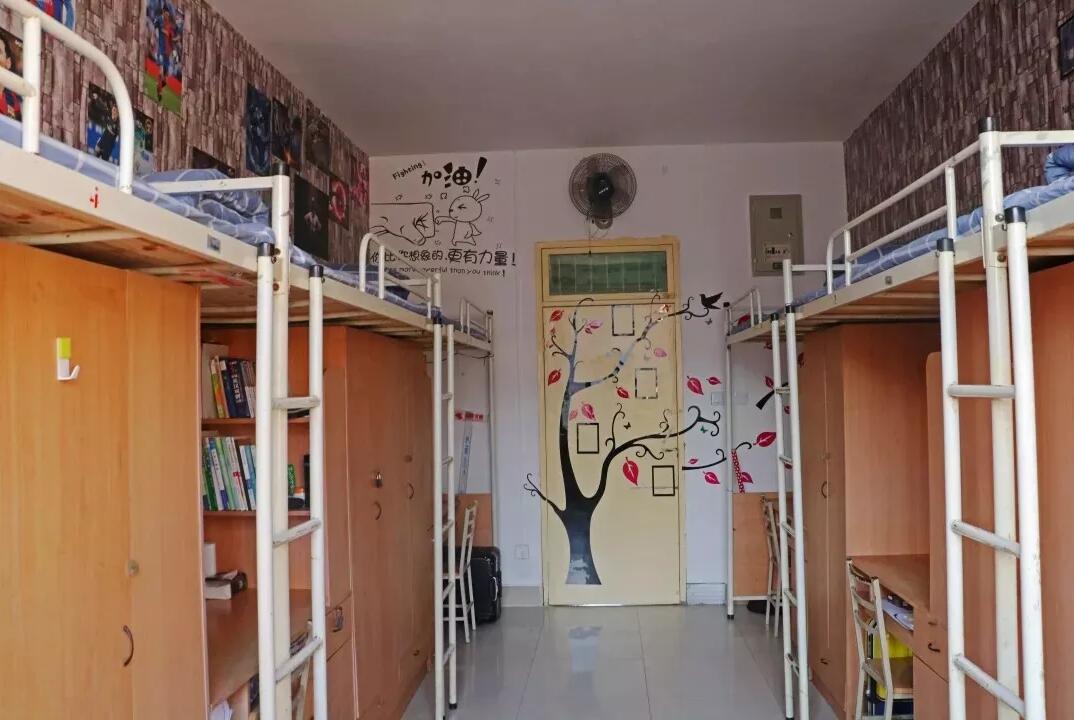 9-410 结合了大海与蓝天意义的宿舍,色彩纯美,线条规则,装饰手法鲜明,全宿舍装饰采用北欧风格,色彩明亮,沉稳大气。