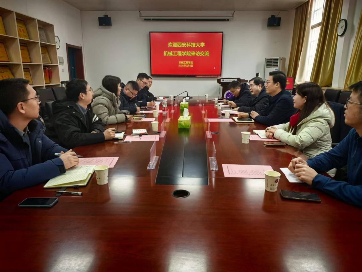 为深化校际合作,学习借鉴先进经验,共谋发展新篇,2月6日下午,机械工程学院党委书记郭小平、院长曹现刚等一行6人赴西安理工大学机械工程学院进行专题调研交流,双方围绕人才培养、学科建设、科学研究、社会服务及“十五五”规划编制等内容进行了深入交流与探讨。