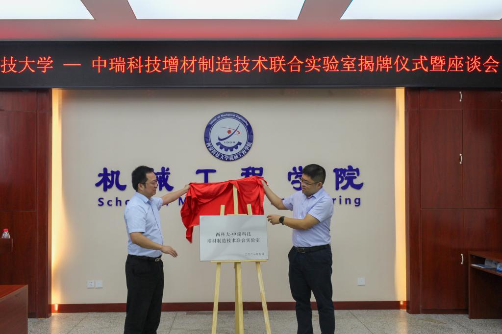 9月14日上午,机械学院在雁塔校区北院学院会议室,举行了“西科大-中瑞科技增材制造技术联合实验室”揭牌仪式,苏州中瑞智创三维科技股份有限公司董事长周宏志,校科技处副处长戴开文,机械学院党委书记张金来、院长张旭辉、副院长寇发荣,以及机械制造学科专业领域师生30余人参加。会议由副院长寇发荣主持。