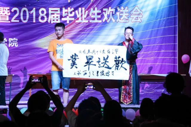 穿插在表演中的还有“幸福末班车”活动,由嘉宾们随机抽取幸运观众上台领取精美的奖品,中奖了的幸运儿的惊讶声以及未中奖的叹气声将现场气氛成功的推向顶峰。节目的最后,由学院党委书记汪卫兵,院长张传伟为毕业生代表授“文明离校,感恩离校”旗,倡导毕业生以健康文明、和谐有序的方式告别大学生活,以朝气蓬勃、奋发有为的精神风貌走上人生新旅程。随后,万众瞩目的教职工合唱表演终于开始了,他们的热情与激动感染了在座的每一个人。