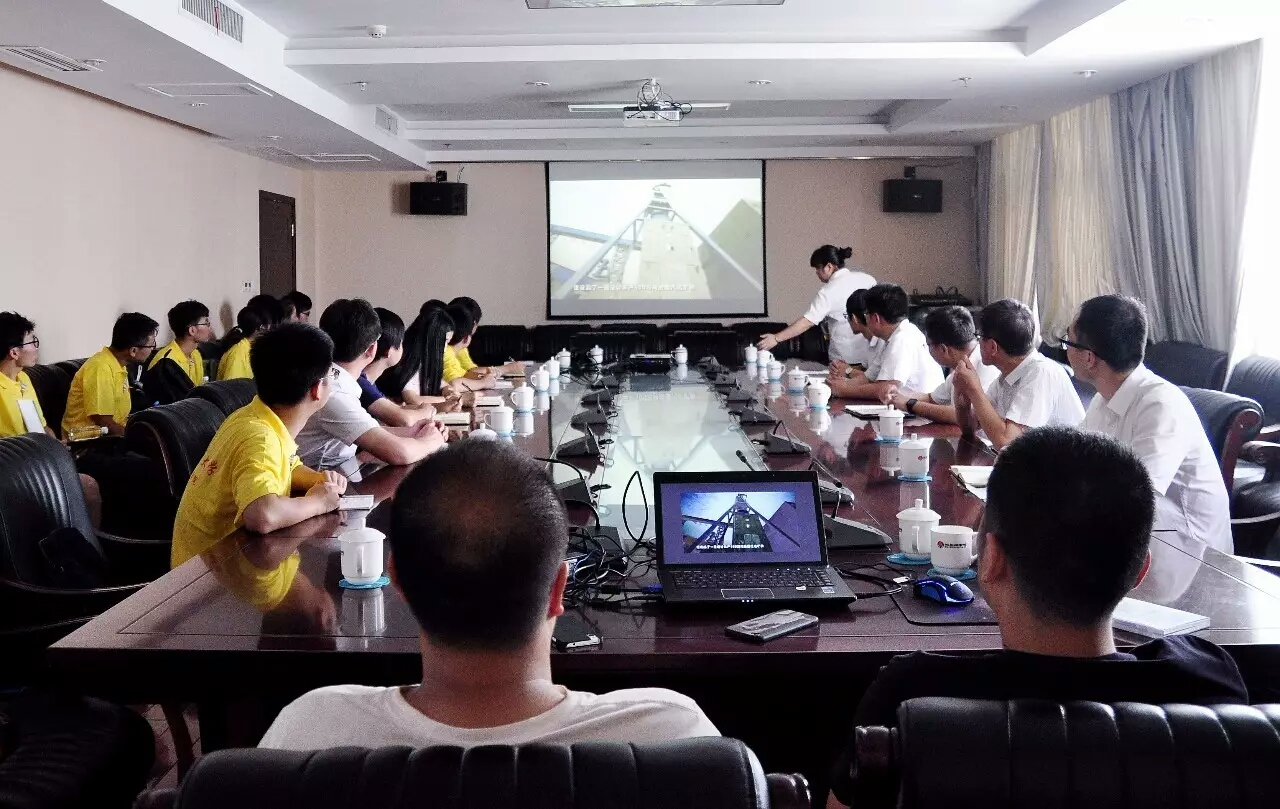实践团受到了胡家河煤矿领导们的亲切接待,在公司会议室召开交流座谈会,西安科技大学9位校友受邀参加了此次座谈会,矿领导对胡家河煤矿生产能力、采煤工艺、人员配备等情况进行了介绍,为深入了解了矿井,实践团同学们跟随负责人参观了煤矿矿井场地,在机修车间参观了许多开关电缆和电磁起动器,在副井口参观工作环境,煤矿工人的上下井和出罐。在动力科同学们参观了副井绞车房和主井绞车房并通过监控观看了物料、工人和煤的上下井过程,并了解到主井绞车因为是提煤所以钢丝绳相对于副井绞车钢丝绳要粗些质量要好些。最后同学们参观了洗煤厂,工作人员向我们介绍选煤厂是煤炭行业对生产原煤进行筛分和洗选以提高煤炭产品质量的加工厂。选煤厂一系列加工生产环节中,大量机电设备的操作和管理都涉及人身安全,为保证选煤厂能实现安全生产,必须坚持“安全第一、预防为主”的方针,制定出适应选煤厂生产安全和客观规律,体现选煤行业科技进步、保护环境和现代化进程的标准。胡家河现代化的采煤设备和采掘工艺让学生们非常惊叹。